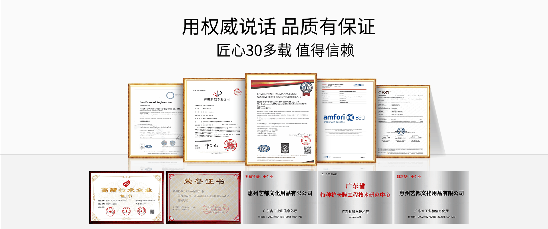 艺都专注于塑封膜生产已有30多年有专属研发团队及研发中心,生产及淋膜工艺成熟,稳定。